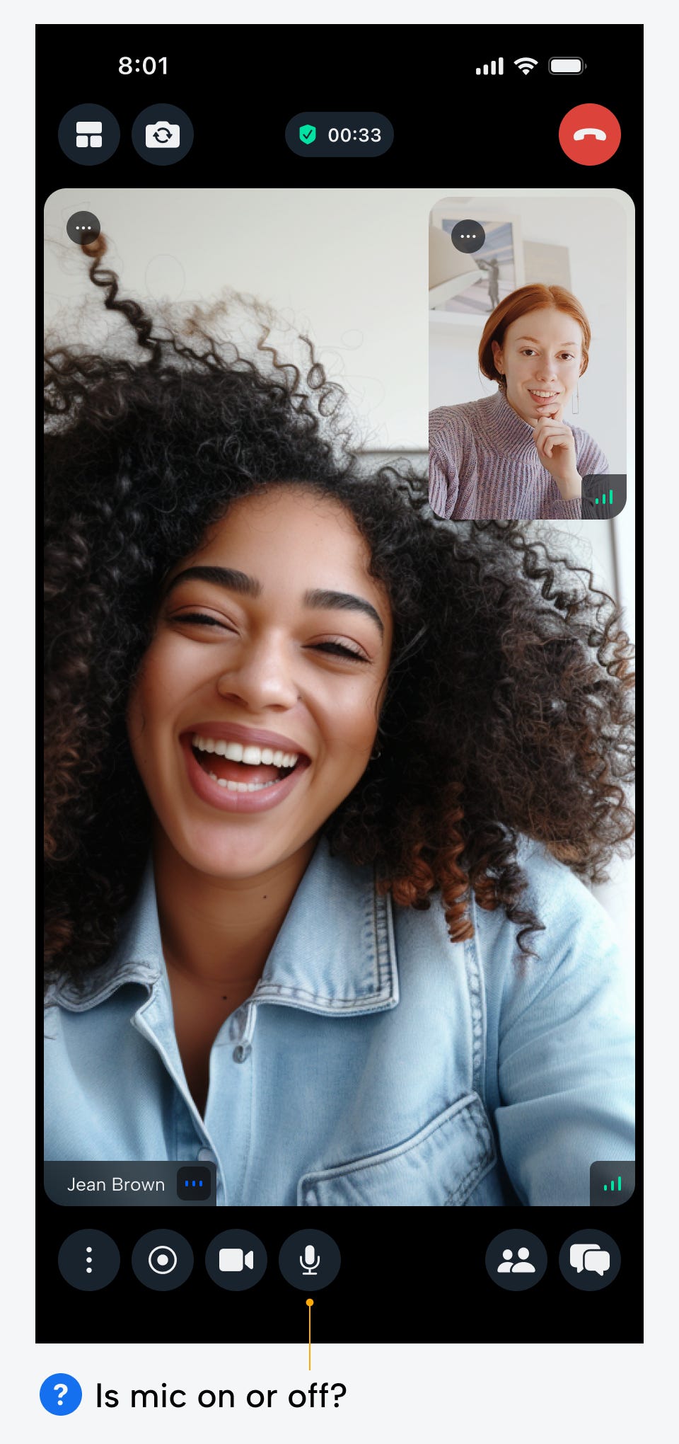 This accidental hot mic moment is the worst mistake a user could make. The UX design of a mic button should prevent these accidents. However, most mic buttons fail to do so because they have confusing and unintuitive on and off states.